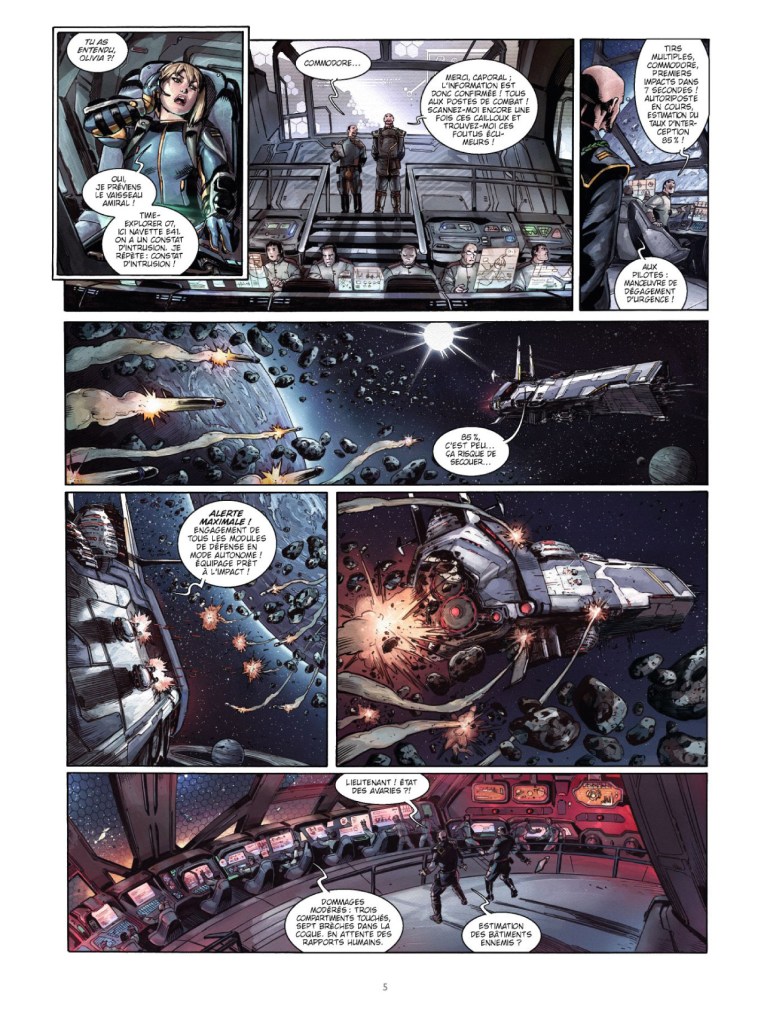Je ne connaissais ni le scénariste ni le dessinateur de cette série, le scénario se veut de la tradition des space opéra, le rythme est plutot soutenu ce qui s’explique par deux choses : le récit fait état d’une course poursuite entre les membres de l’Agence et les écumeurs pour récupérer les nefs échouées, et le fait que chaque album raconte une mission oblige à faire tenir le scénario dans une cinquantaine de pages.