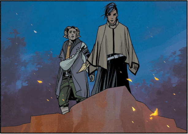 Saga est un récit à la fois drôle, émouvant et palpitant. Le côté Roméo et Juliette des étoiles n’en fait pas un récit cucul la praline, ne le mettez pas entre les mains des plus jeunes ce n’est pas fait pour eux tant les personnages hauts en couleurs peuvent s’adonner à des plaisirs plus ou moins recommandables… La série a été mise en pause en 2018 au numéro 54 marquant la moitié du récit, je peux dire que j’étais dans le mal et que je guettais les news pour savoir quand la parution reprendrait… finalement c’est en 2022 que les parutions sont reparties, espérons en ligne droite jusqu’au numéro 108!